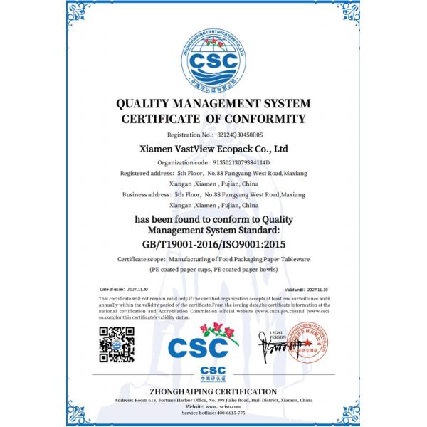 Certifications: SGS FDA EU, ISO9001, FSC are all available.